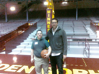 So, Alec got a two-fer: we had a Continental breakfast and then Alec went on the court to shoot and see what Williams arena looked like from the floor. Here are some photos at the event